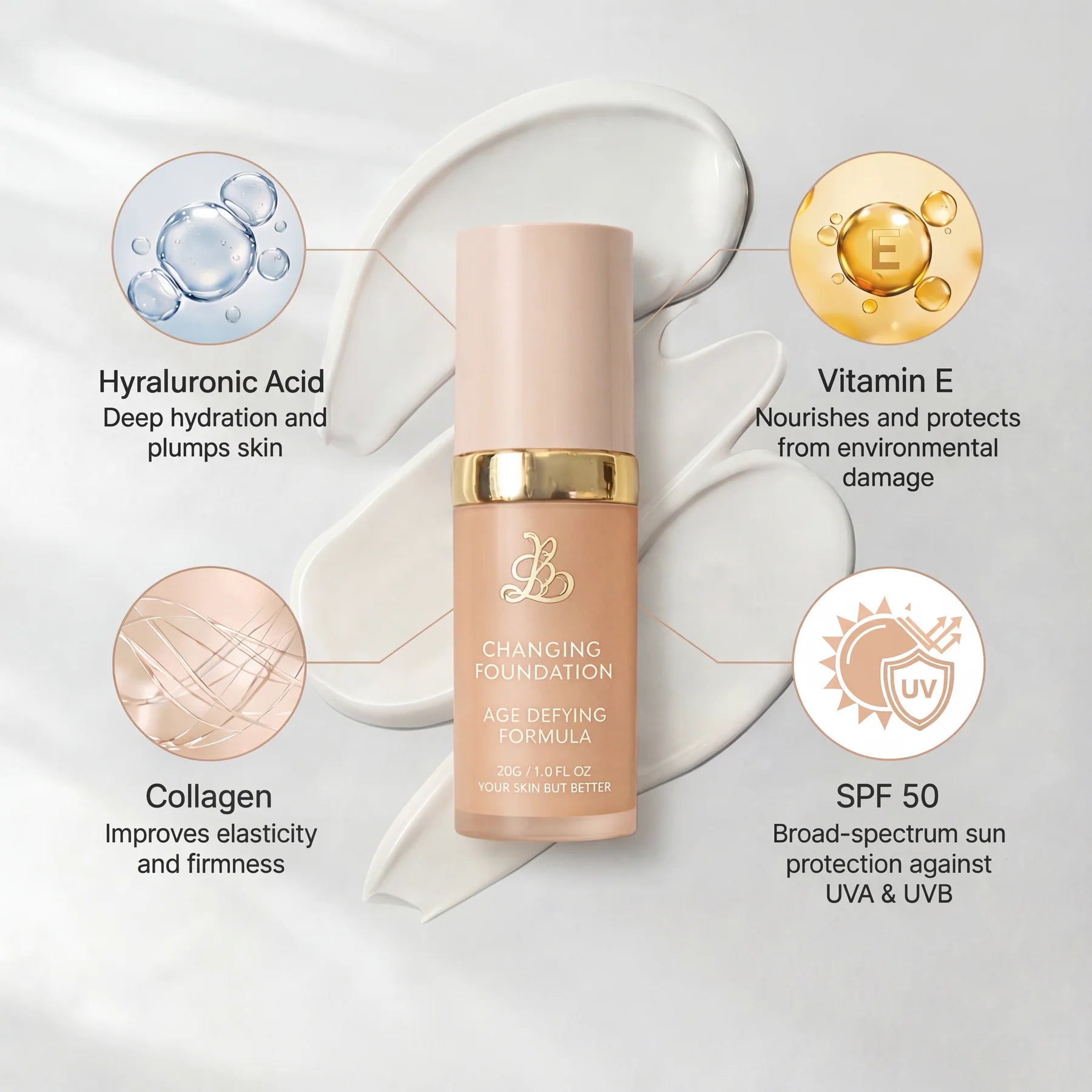 Changing Foundation is a lightweight, moisturizing formula designed to hydrate and care for your skin, making it an excellent choice for reducing the appearance of wrinkles and fine lines while providing a natural, radiant look.