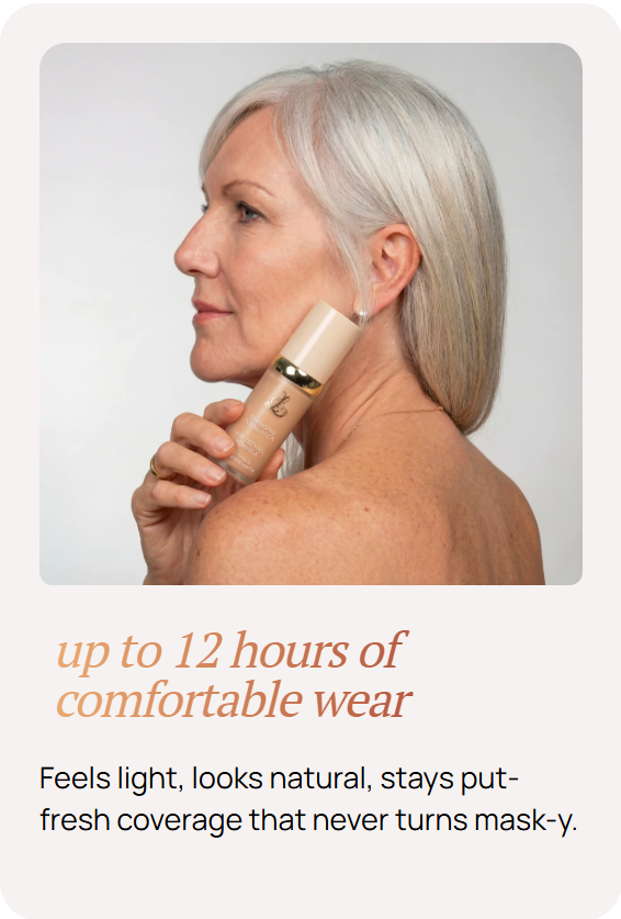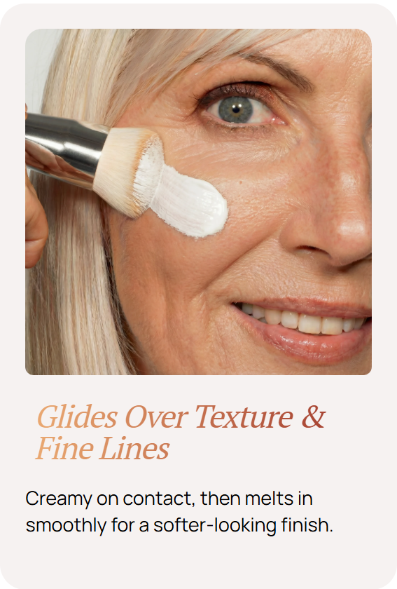 Lightweight, breathable formula glides over crepey areas and fine lines—never caking, creasing, or emphasizing texture. Just naturally smooth, even-toned skin.