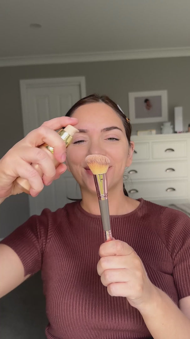 For optimal results, we recommend applying the foundation with a brush. This technique helps the pigment particles penetrate deeper into the skin, preventing any white cast.